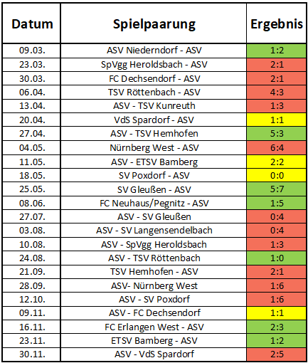 Es wurden insgesamt 23 Spiele ausgetragen. Davon konnten 7 gewonnen werden, 4 endeten Unentschieden und 12 Mal setzte es eine Niederlage. Das Torverhältnis lag bei 45:65.