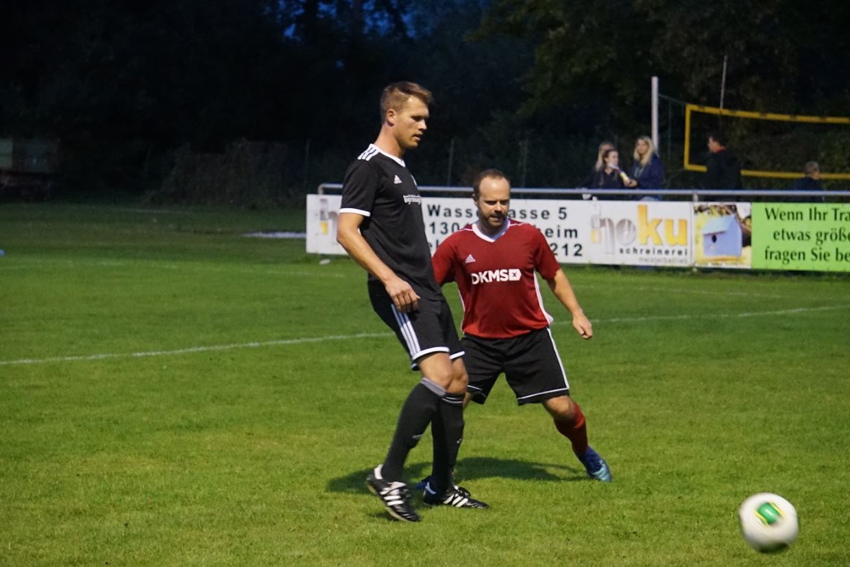 Da die AH es nicht schaffte das Spiel auch über die Außen gezielt nach vorne anzutreiben lief es meist durch die Mitte ab. Jedoch gab es hier so gut wie keine Räume. Als sich der AH-Gastspieler Basti Bauer dann doch mal im Zentrum auf engstem Raum durchsetzen konnte kam der Ball zu Georg Stumpf. Dieser bediente in der Mitte Benni Kalender, der den Ball zum 2:2-Ausgleich einschieben konnte.