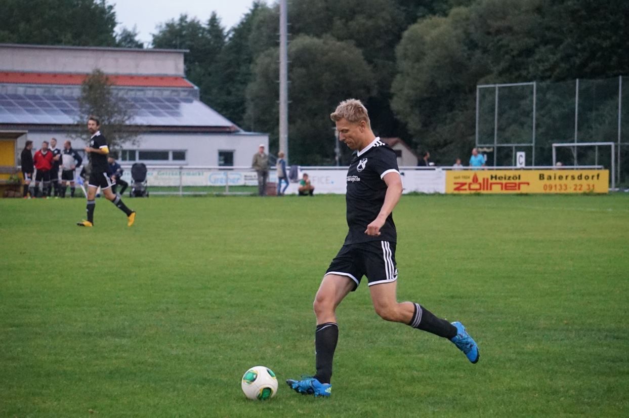 Gleich zu Beginn konnte man erkennen, dass sich hier zwei Teams gegenüberstehen, die weitaus besseres Niveau haben als übliche AH-Mannschaften. Der ASV brauchte ein paar Minuten um ins Spiel zu kommen und hatte Glück, dass Hirschaid seine Überlegenheit in den ersten Minuten nicht in Tore umwandeln konnte. Die Gäste hatte mehrere hochkarätige Chancen, waren aber im Torabschluss zu ungenau. Der ASV hingegen stand im ersten Durchgang sehr tief sodass sich in der Mitte vor der Viererkette zu viele Freiräume für Hirschaid auftaten, die sie auch des Öfteren nutzten. Der Grund lag auch daran, weil der ASV auf einen bestimmten Gästestürmer besonders Augenmerk legen wollte und dieser sich aber immer an der Abseitsgrenze bewegte. Dass diese Art von Manndeckung notwendig sein würde, sollte sich dann im zweiten Durchgang lohnen.