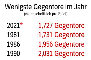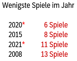 In den mit einem roten Stern gekennzeichneten Jahren 2020 und 2021 fanden pandemiebedingt nur wenige Spiele statt.